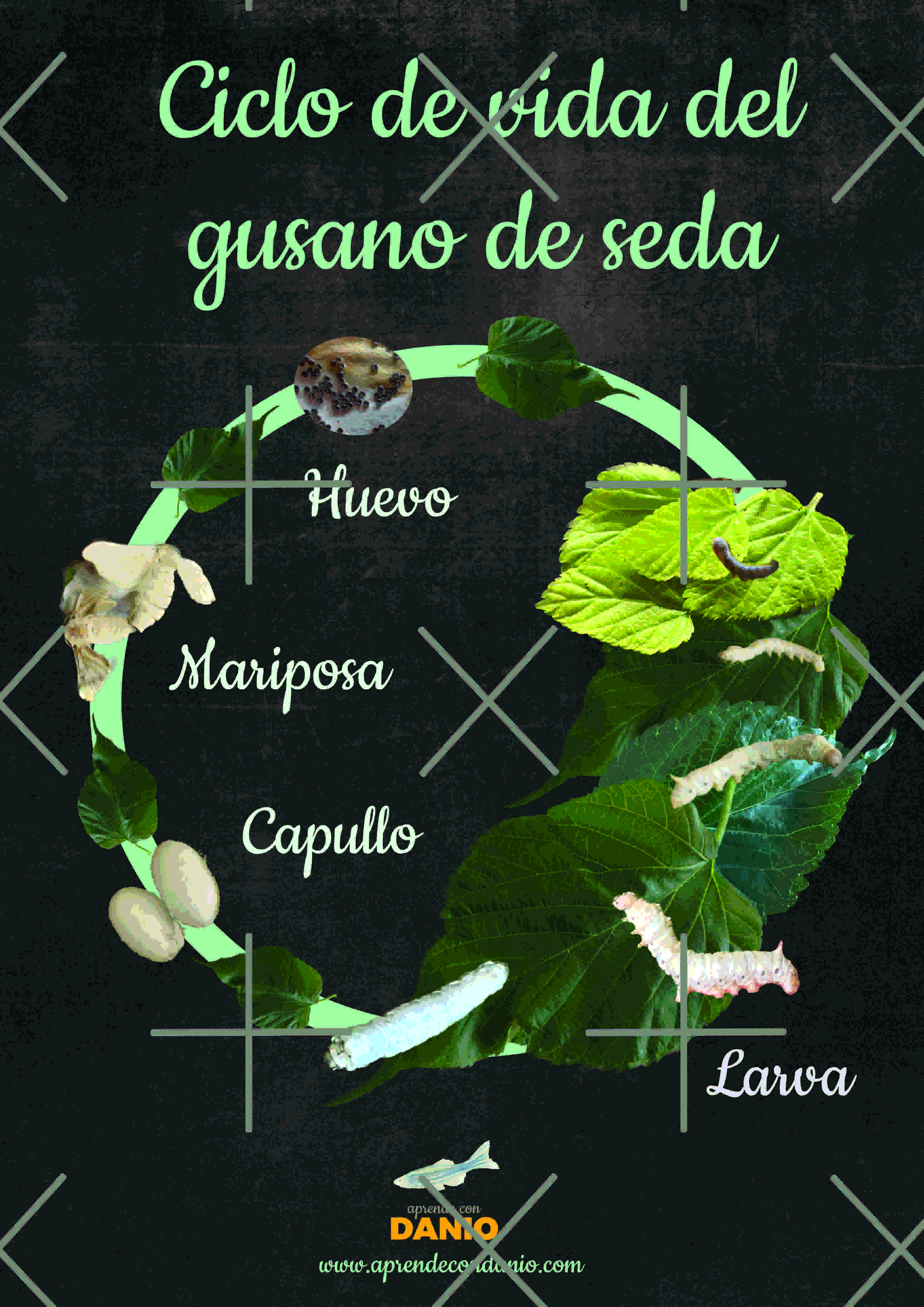 Descarga GRATIS nuestro póster con el ciclo de vida del gusano de seda